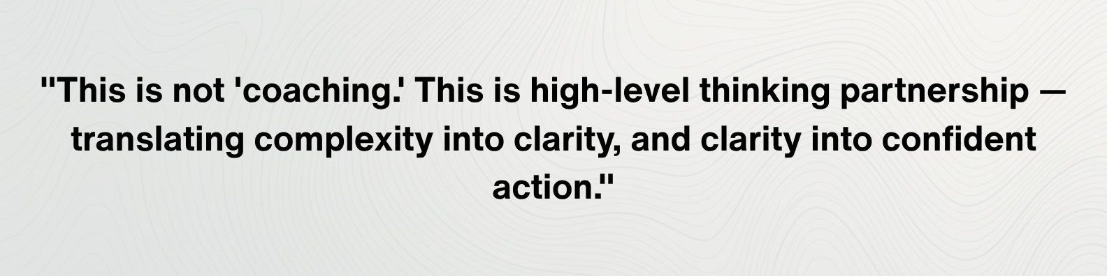 A confidential thinking partnership for founders who need clarity on decisions, presence, strategy, and leading through complexity.